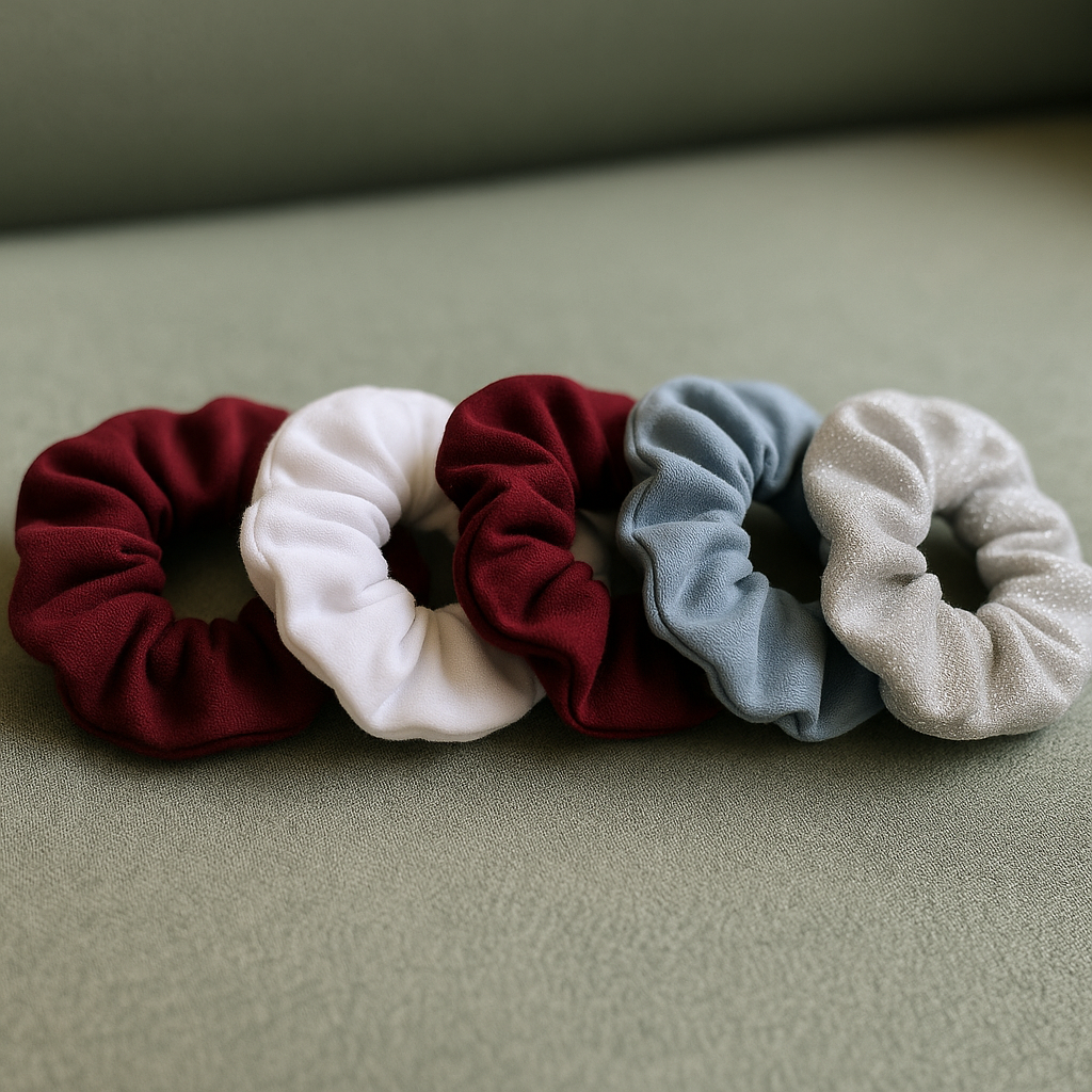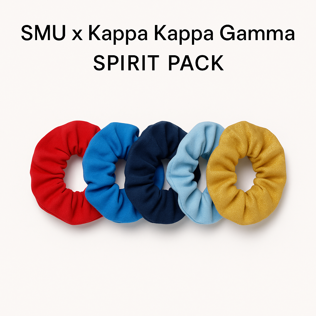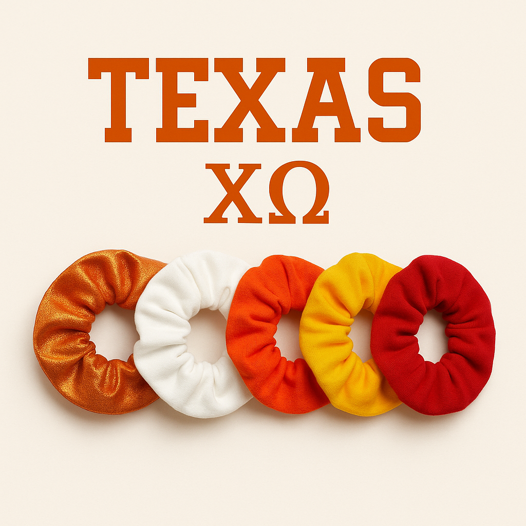 ✔️ 4 jersey scrunchies in your school and sorority colors